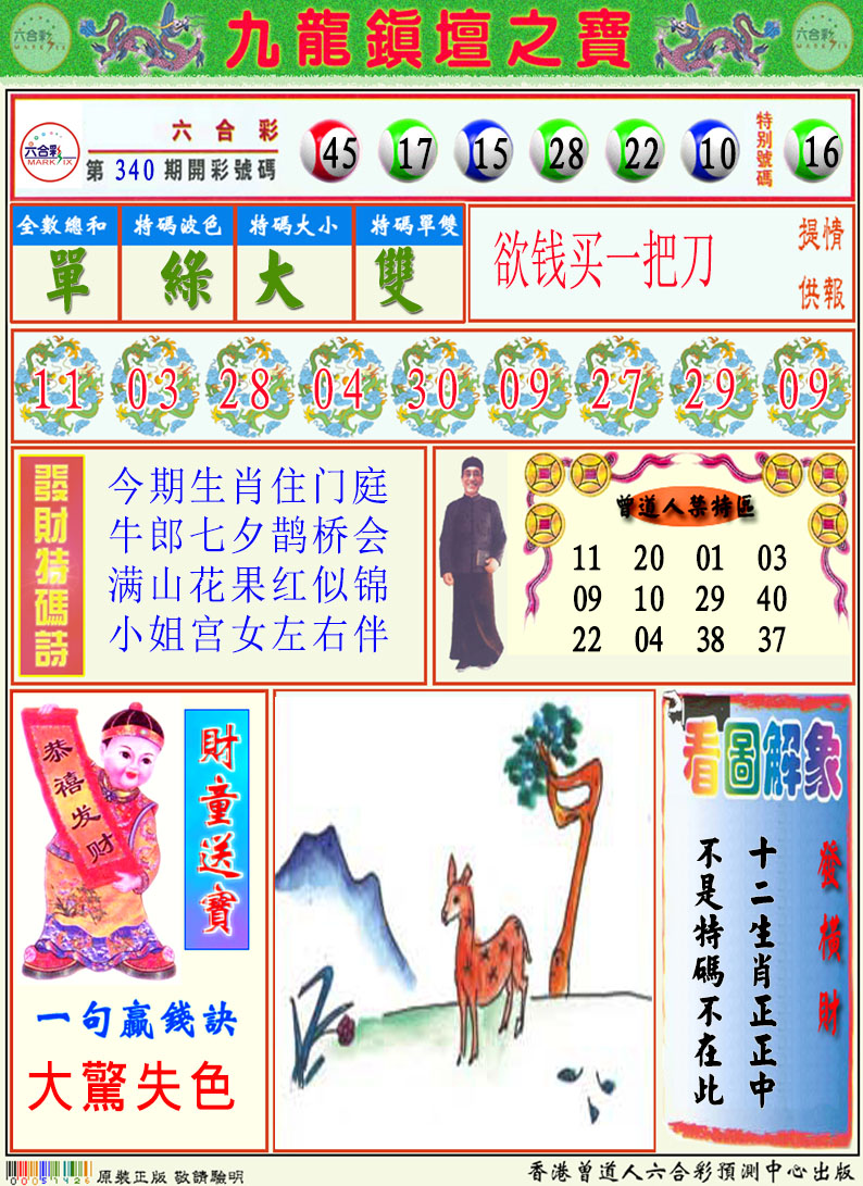 337期: 二波中特 【绿波蓝波】 开 09鸡 准